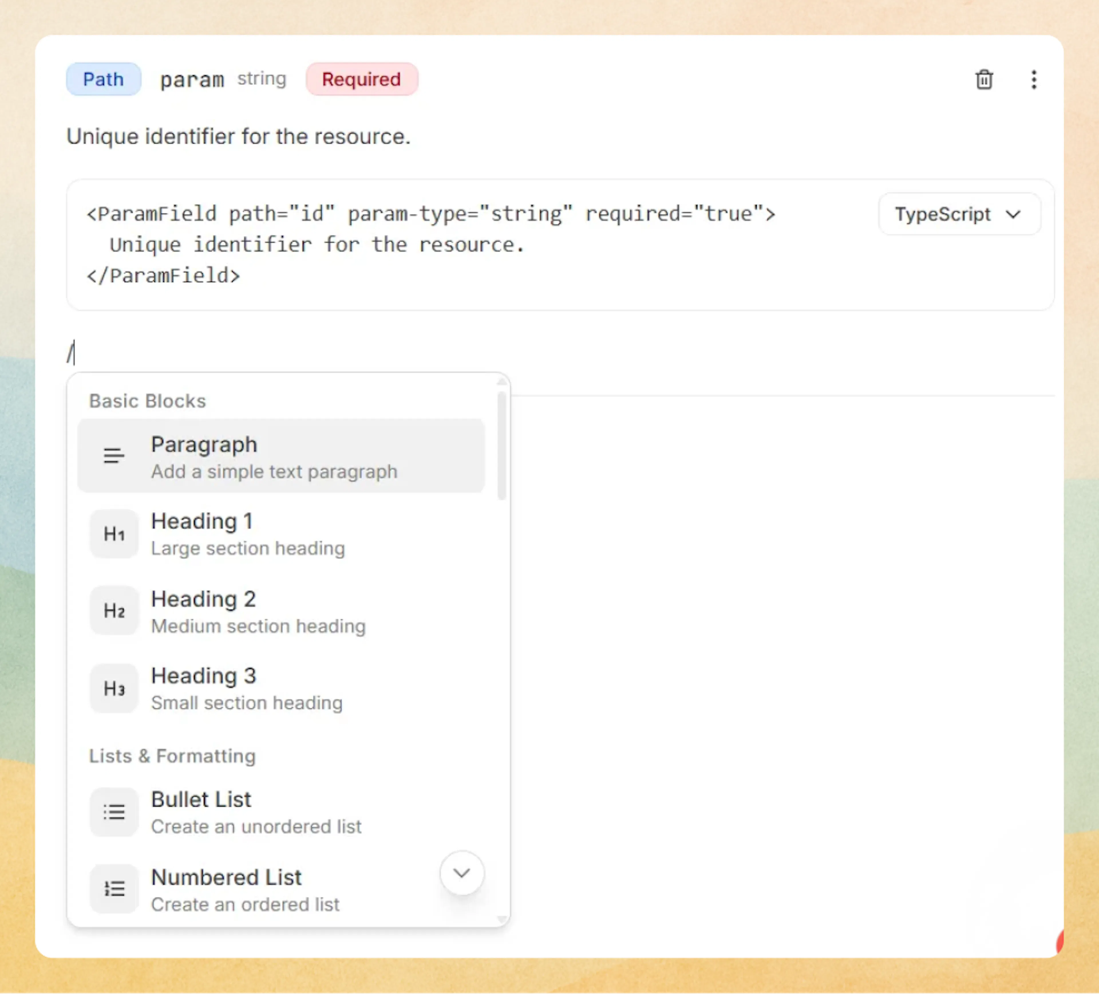 Add a ParamField block